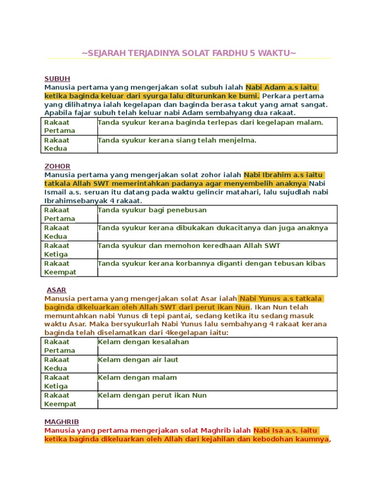 Sejarah Terjadinya Solat Fardhu 5 Waktu Pdf